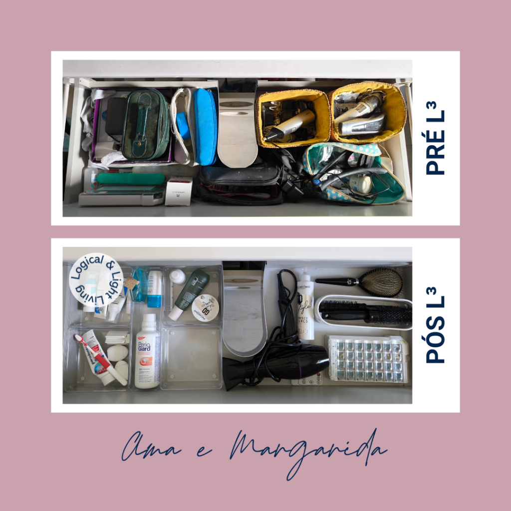 Depois da intervenção, o nosso cliente relatou mais rapidez na rotina matinal, facilidade em encontrar tudo sem stress, sensação de ordem que se estende ao resto do dia e prazer em usar um espaço clean e bonito, assim como facilidade em repor tudo no devido lugar e assim manter o sistema implementado.