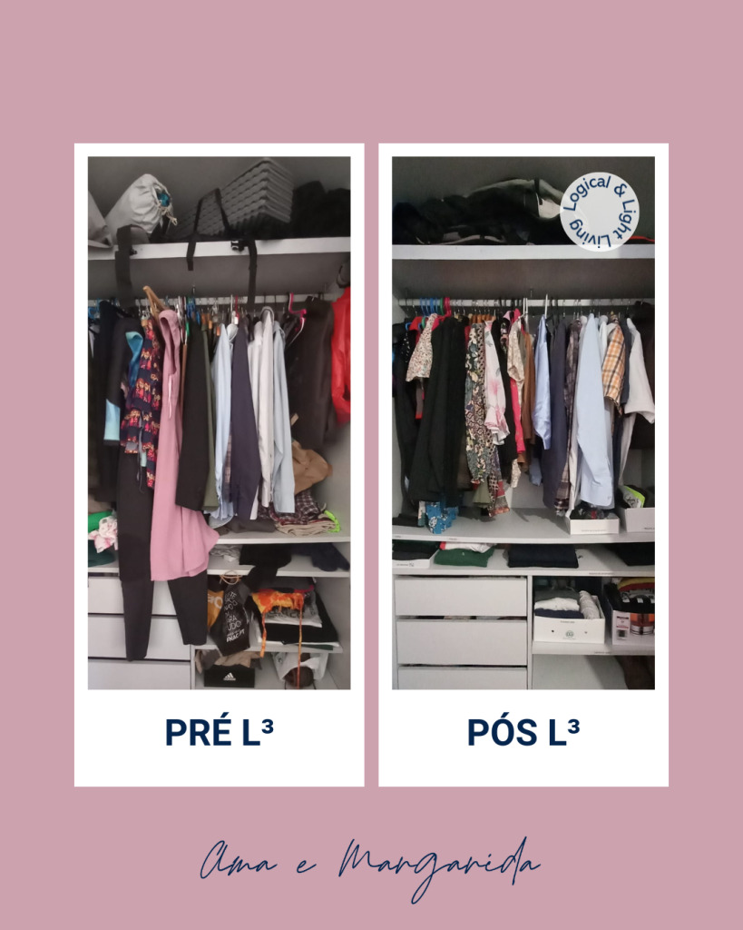 O resultado final não foi um armário rígido ou cheio de regras, mas sim um espaço funcional, adaptado à rotina da cliente, fácil de manter e mentalmente mais leve. A organização deixou de ser uma obrigação e passou a ser um apoio no dia-a-dia.